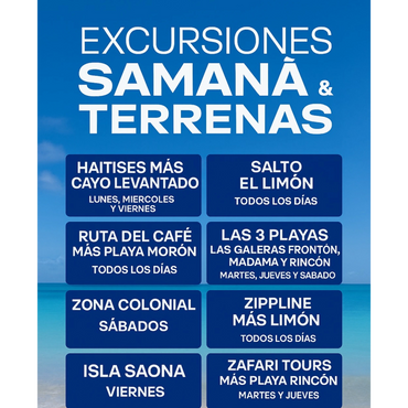 Muy buen servicio. Contratamos un tour por las playas de las Galeras y salió perfecto . Tanto la atención en la oficina, como el chófer que nos llevó ahí, como el patrón y ayudante que nos llevaron en la lancha, de 10. Amables y profesionales. Repetiría.